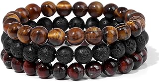 Young & Forever Reiki Crystal Beads Bracelets Original Red Tiger Eye Brown Tiger Eye Lava Rock Set of 3 Bracelet Set