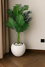 Artificial Green Cicas Tree with Dense Leaves in Elegant White Boot for Decoration.