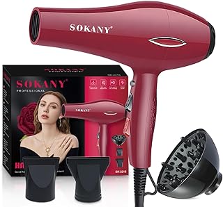 Professional Hair Dryer 1600W Ionic Technology With 3 Speeds - Black Red