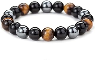 Tiger Eye Bracelet,10MM Relax Anxiety Triple Protection Bracelet Spiritual Crystal Gemstones Beaded Bracelets for women men Bring Luck And Prosperity, tiger eye