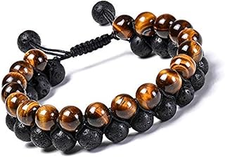 Moneekar Jewels Tiger Eye Stone Bracelet for Men Natural Energy Stone Essential Oil Lava Rock Black Onyx Tiger Eye Beads Adjustable Bracelet for Men