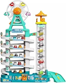 FREK SELAK, Ferris Wheel & ElevatorCar Adventure- 4 Level Parking with Light –Music & 14 Mini Cars & Vans-Garage Parking Lot Play Set for Kids- Boys & Girls
