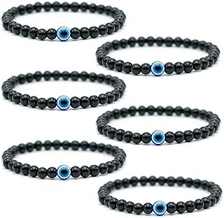 Lameybrt Evil Eye Bracelet 6mm Natural Stretch Adjustable Beaded Bracelets for Men, M (6.6"-7.5"), agate, Agate