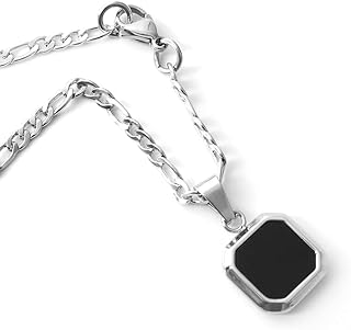 DF Black Onyx Pendant Necklace, Stone Pendant, Mens Stone Necklace, Stainless Steel Chain, Men's Jewellery, Mens Silver Necklace, 20" (Black Onyx)
