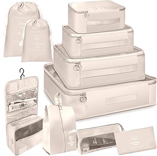 WVLIROD Packing Cubes 11 Pcs Travel Luggage Packing for Suitcases Organizers Set with Toiletry Bag Compression Storage Shoe Bag, Clothing Underwear Bag (Beige)