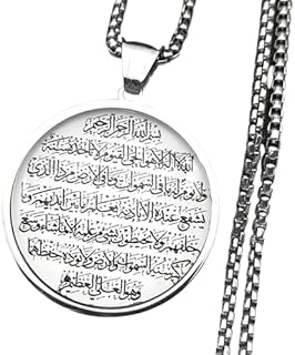 Stainless Steel Islamic Arabic Calligraphy Round Pendant Necklace, Glass Pendant with Box Chain, 60cm Length, Religious Jewelry for Men and Women