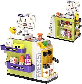 Toyshine 46 Pc Supermarket Cash Register Playset Along with Water Outlet Function | Calculator | Scanner | Coffee Machine | Credit Card and Play Foods Pretend Play Toy for Kids Ages 3+yrs