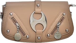Leather Medium Handbag Amazing Design With Metal Clip And Leather Strap Can Be Controlled In Length For Women - Beige Silver