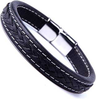URBAN JEWELRY Braided Genuine Leather Bracelet with Locking Stainless Steel Clasp (Unique Designs Options)