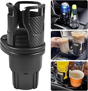 Funmo Car Adjustable Cup Holder, Double Car Cup Holder, 2-in-1 Drinks Holder, 360° Rotatable Bottle Holder, for Hot and Cold Drinks, Compatible with Most Vehicles (Black)