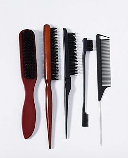 Professional 5-Piece Hair Styling Set, Beard Brush and Comb Kit, Brown and Black Grooming Tools for Barber Salon, Edge Control, Detangling, Teasing