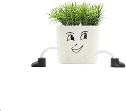 Shatoora, Artificial Flower Pot with Swinging Legs and Smile, White Plastic Decorative Plant for Home and Office