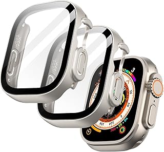 V VOLT 2 Pack Watch Case with Screen Protector Compatible with iWatch Ultra 49mm, All-Inclusive Protective Cover with Built-in Tempered Glass Film High Sensitivity (Starlight)