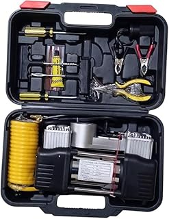 مجموعة ضاغط هواء محمول للسيارة، أسطوانة مزدوجة، تيار مستمر 12 فولت مع مجموعة أدوات وشنطة حمل