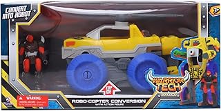 Happy Line Warrior Tech Robo-Copter Conversion Toy with Action Figure, Yellow Monster Truck Transforms to Robot