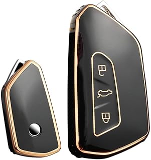KUNIO Keyless Key Case Fits VW Golf 8 GTE GTI ID.3 ID.4 GTX Fits Seat Leon MK4 Cupra Formentor Protective TPU Key Cover 3 Buttons B Black