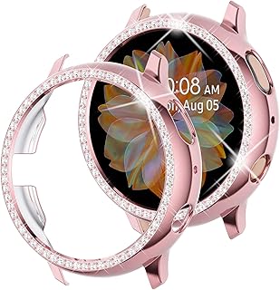 Dl3 Mobilak Bumper Diamond Case Compatible with Samsung Galaxy Watch Active 2 44mm, Bling Crystal Diamonds PC Plastic Protector Case Cover Frame For Galaxy Watch Active2 44 mm (Pink)