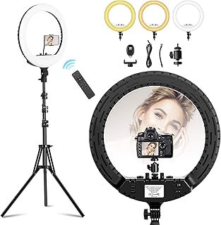 Ring Light with Tripod Stand & Phone Holder 18 inch Dimmable LED Selfie Circle Light with 3 Color and 10 Brightness Level for YouTube/TikTok/Live Streaming/Video Shooting/Makeup, Bluetooth, USB