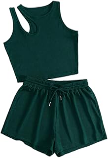 SheIn 2pc Women Clothing Set Women EZwear Cut Out Tank Top Drawstring Waist Shorts, M1766654, Dark Green, L