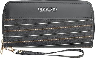 Faux Leather Large Rectangle Bifold Wallet Contains Zipper Pocket With Divided Interior Business Card Pockets And Includes Hand Strap Practical Design For Women - Black