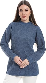 CAESAR WOMEN WOOL PLAIN PULLOVER WITH HALF NECK AND MULTIDESIGN,BLUE,ONE SIZE FITS ALL