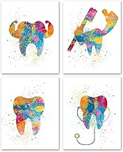 Nvhai Set of 4 Dental Care Teeth Watercolor Prints Wall Art Prints,Dentist Practice Tooth Poster Wall Art Décor Gifts for Dentist Office(8x10 Unframed)