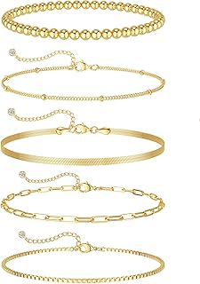 DEARMAY Gold Bracelets for Women, 14K Real Gold Jewelry Sets for Women Cute Tennis Beaded Bracelets for Women Cuban Link Paperclip Chain Dainty Bracelet Pack Gifts for Women
