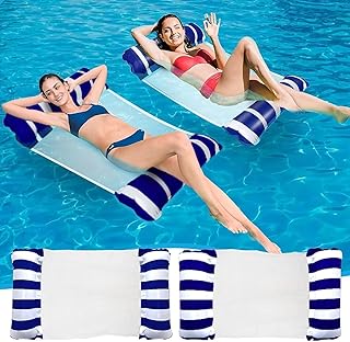 SKY-TOUCH Inflatable Pool Float, 2 Pack Meegoo Inflatable Water Hammock for Adults, Portable Water Hammock with Bottom Mesh for Vacation Fun and Rest, Water Lounge,(With air pump)Dark Blue,120 * 70cm