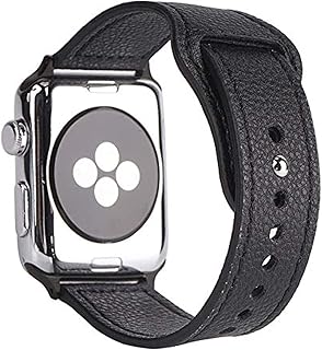 Classic Genuine Leather Strap Compatible with Apple Watch 38mm/40mm/41mm – Soft, Durable, Traditional Buckle Closure – Black