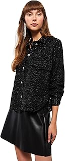 LC WAIKIKI Glitter Detailed Long Sleeve Women's Shirt Jacket W2Fp92Z8-Cvl-1 Xs-S Black