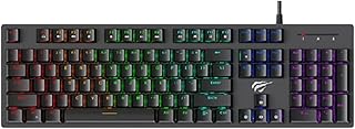 Havit KB858L,Mechanical Keyboard, RGB Backlit With 12 Multimedia Keys, 26 Anti-Ghosting Keys & Professional Mechanical Blue Switches and tactile collisions black