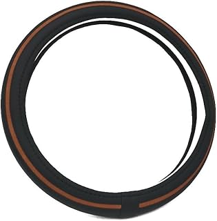 Generic Car Steering Wheel Cover Natural Leather Breathable Anti-Slip Stylish Car Hand Comfort Universal Fit 15 Inch Black in Line Camel