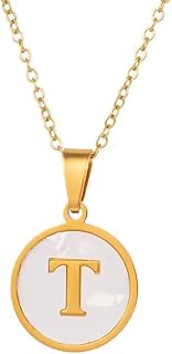 Fayruz Jewelry Stainless Steel Gold Plated Necklace for Women Gold Alphabet Letter Necklace Shell Initial A-Z Pendant Necklace Dainty Initial Pendant Necklace