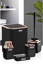 Okayanus Striped Square Bathroom Set 5 Pcs Trash Can - Toilet Brush & Holder - Soap Dispenser - Toothbrush Holder - Soap Dish Rose Black