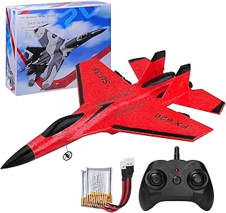 طائرة بجهاز تحكم عن بعد بقناتين، بتردد 2.4 جيجاهرتز، طائرة نفاثة SU35 جاهزة للطيران، سهلة القيادة FX620، مناسبة للبالغين والأطفال والمبتدئين ومزودة بأضواء ليلية من هوستوم - لون أحمر