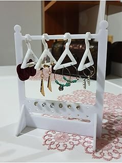 SM4U Decorative Jewellery Stand with Hangers, White Plexiglass Display Organiser with Rhinestone Accents