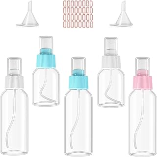 5 Pack Plastic Clear Spray Bottles,100ML/3.4oz & 50ML/2oz Refillable Small Empty Containers with 2pcs Funnels and 32pcs Labels for Cleaning Solution, Perfume, Essential Oil, Liquid