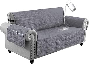 LIWEGHT Sofa Covers Waterproof Couch Cover Non-Slip Quilted Sofa Slipcover for Dogs Furniture Protector Cover for Pets with Adjustable Strap Washable(3 Seater, Grey)