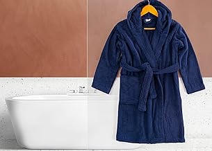 Jacquarddina Egyptian Kids Bathrobe in Navy Blue (Royal Navy) - 100% Cotton, Quick-Dry - Soft and Absorbent for Home and Beach Use