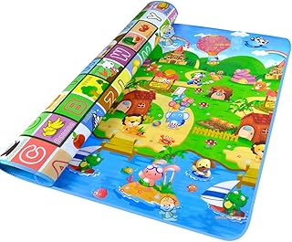 Genikeer Foldable Play Mat for Baby, Crawling Play Mat, 5 mm Thick, Large, Foldable and Reversible Waterproof Foam Floor Mat for Baby Boy Girl – 200 x 180 cm/180 x 120 cm