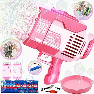 132 Holes Bubble Gun Bazooka Bubble Blower, Automatic Bubbles Blaster with Lights,Rocket Boom Bubble Toys for Kids Adults,Bubble Makers for Summer Outdoor Indoor Birthday Party Wedding Favors Gift