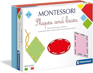 Clementoni 61335 montessori-shapes and laces educational toy for children-ages 3 years plus, multi coloured