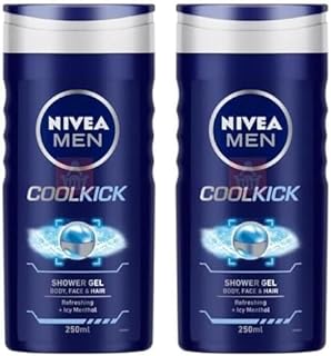 NIVEA MEN 3in1 Shower Gel Body Wash, Cool Kick 24h Fresh Effect Masculine Scent, 250ml (Pack of 2)