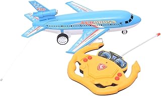 Generic Plastic High Performance Lighting Air Plane Bus With Wireless Controling Wheel And Small Rocket For Kids Set Of 2 Pieces - Blue Yellow