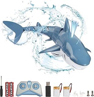 Generic 2.4GHz Remote Control Shark Swimming Pool Toy with Lights, Water Spray, Blue & Grey, Plastic, 18 x 14 x 15 cm, Age 6+
