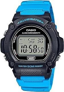 Casio W219H Series | Digital Watch | Illuminator | Blue/Black | 50M WR | 1/100 SEC Stopwatch | LED Backlight | Auto Calendar | Regular Time Keeping (HR, Min, SEC, PM, Date, Day) | 7 Year Battery