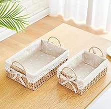 Handmade Bamboo Home Storage Baskets with Washable Cloth Liner, Cosmetic Storage and Snack Food Organization (Rectangle-2 Pieces, Beige)