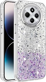 Dl3 Mobilak Compatible with Xiaomi Redmi 14C 4G/Poco C75 Case, Clear Glitter Bling Sparkly, Soft TPU Frame Bumper, Hard-Back Cover for Women & Girls, Transparent Protective Phone Case (White Purple)