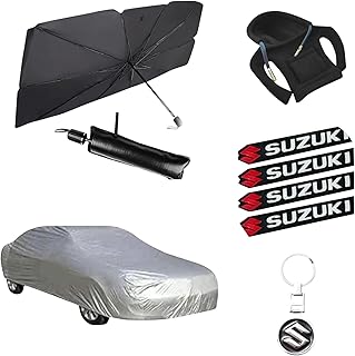 Auto MYK Car essentials Gift Kit for Swift include High quality water proof cover + Car Windshield Sun Shade + Branded Key Chain + Assorted color Gear Hoodi + Branded Door Stopper + Sting bag