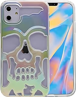 Next Store Compatible with iPhone 11 PC Case Skull Design with Laser Color Film, Hollow Out Glossy Finish, Slim Stylish Shell (White)